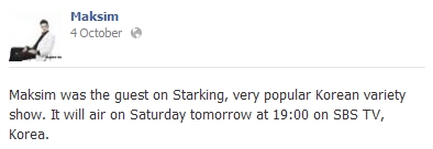 邁可森在一個非常受歡迎的韓國綜藝節目Starking擔任特別來賓。這個節目將在明日週六19:00於韓國SBS電視台播出。